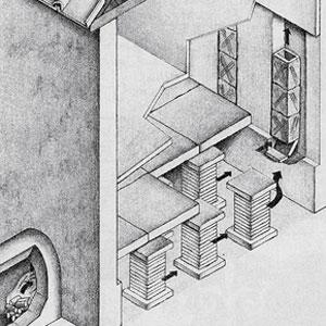 fires under elevated marble floors, keeping toes and togas nice and toasty.