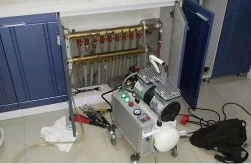 地暖清洗的工具都是脈沖控制的空壓機(jī),這樣就可以實(shí)現(xiàn)把水高壓從一次打入,然后從